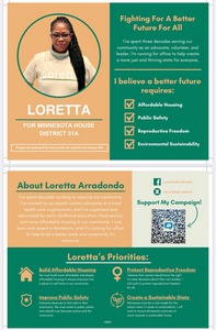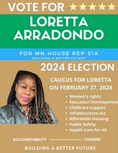 My name is Loretta Arradondo, and I seek your endorsement as the DFL candidate for our State House District, LD51A. I grew up in South Minneapolis, and now live in Richfield. I am the mother of three amazing adult children and a grandmother of eight. I have a long history of community service, which began 1994, when I volunteered for the Neighborhood Involvement Program (NIP), a healthcare organization and clinic that served the uninsured and underinsured. As a Rape and Sexual Assault volunteer at NIP, I supported resilient people who fought to restore life normalcy after experiencing traumatic assault.